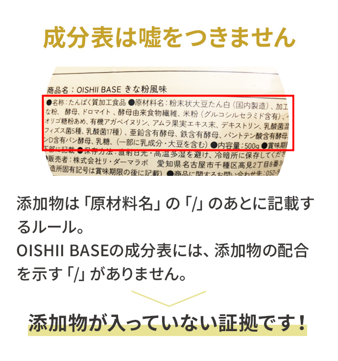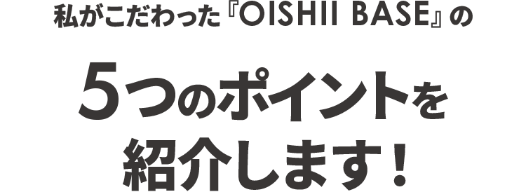 『OISHII BASE』には、余計なものは 一切入れないと決めていました!