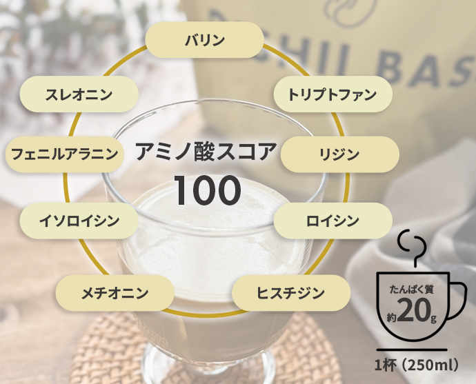 アミノ酸スコアとは、食品に含まれる必須アミノ酸のバランスを評価する指標です。スコアが100に近いほど、体に必要な必須アミノ酸を理想的なバランスで含んでいることを意味します。