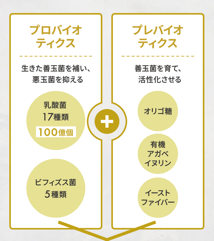 (プロバイオティクス×プレバイオティクス)の力で善玉菌を増やし、腸からしっかり整えることで、美しさも健康も底上げします。